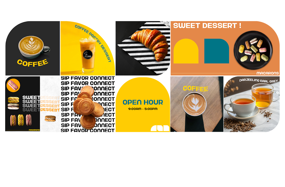 The menu features a selection of pastries, beverages, and specialty teas designed for various dining occasions including breakfast, coffee breaks, and light meals. Visitors can expect a range of items suitable for quick orders or casual dining.